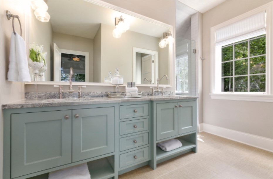 If your kitchen or bathroom cabinets look dated, give them a new life with paint or stain. Opt for light neutral colors to make spaces feel larger.